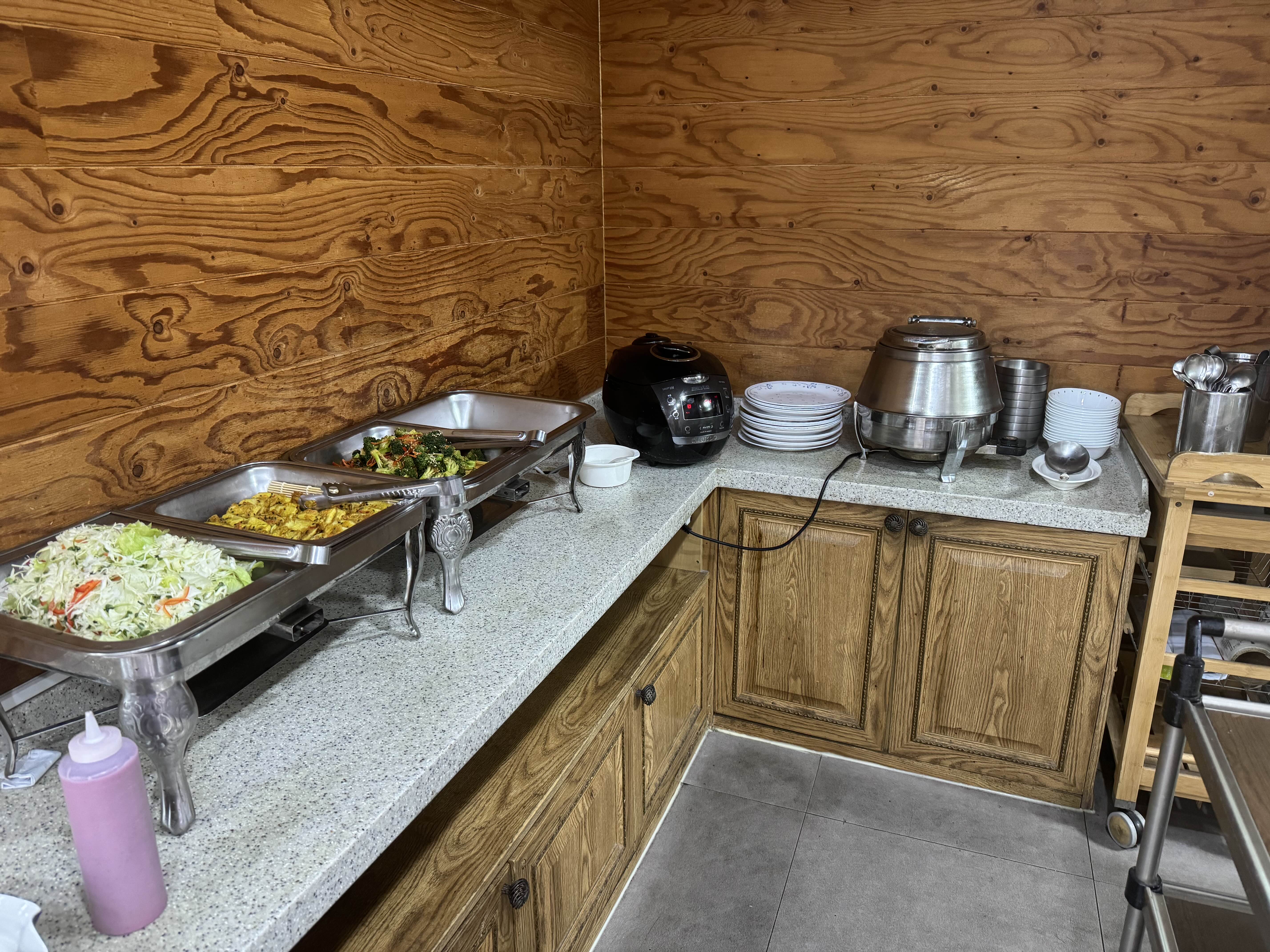 식사는 6층에 올라가면 뷔페식으로 차려진다.